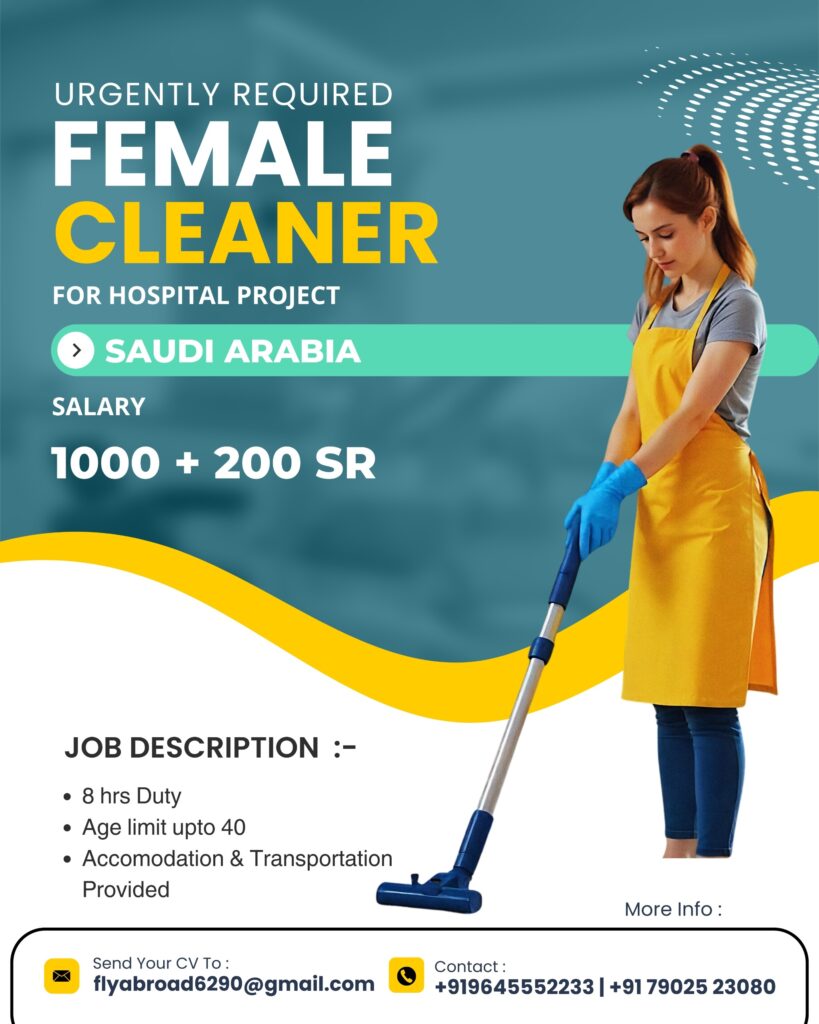 FEMALE CLEANER FOR HOSPITAL PROJECT