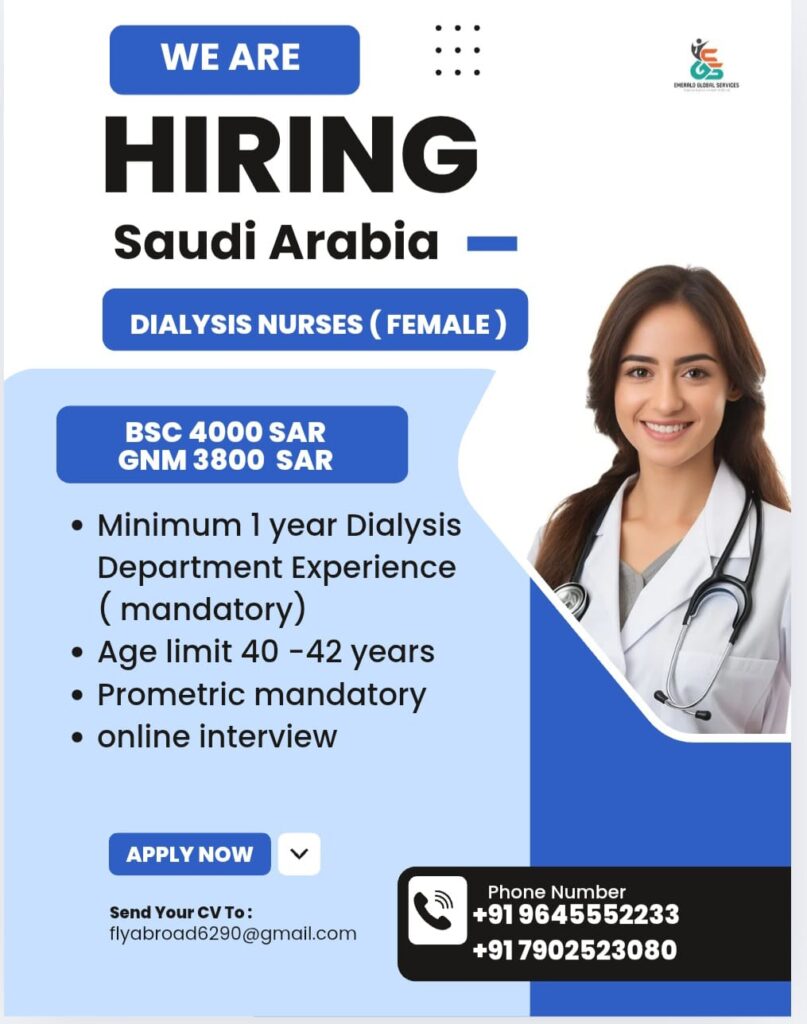 - MINIMUM 1 YEAR DIALYSIS DEPARTMENT EXPERIENCE (MANDATORY )