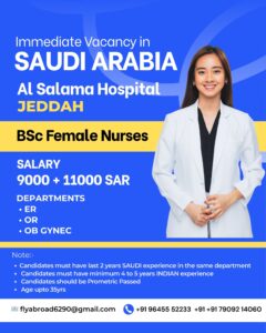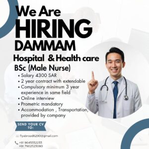 Our Social Media Updates Facebook Instagram HIRING MALE TO SAUDI HIRING FEMALE TO NAJRAN HIRING MALE TO RIYADH TABEEBUK POLYCLINIC – RIYADH TALAL QUTUB MEDICAL CENTER – JIDDAH AL NOMAIS MEDICAL GROUP BSC /GNM FEMALE NURSES CLINIC VACANCY IN SAUDI