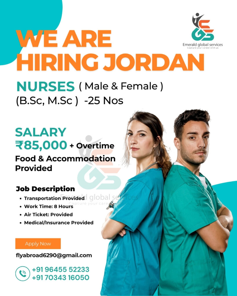 BSC/GNM Experience minimum 3 year Salary – will be discussed during interview Age required upto 35 DIRECT VISA (NOTE : BEFORE DEPARTURE ACLS BLS& ITLS SHOULD BE MANDATORY )